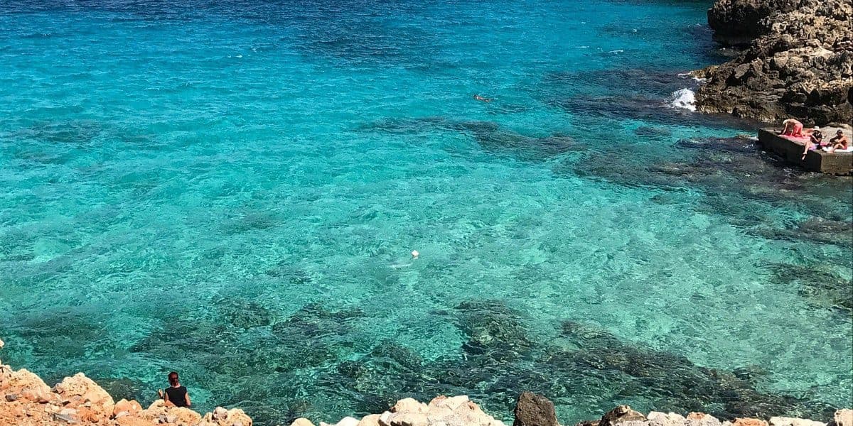 striking turquoise waters and dramatic scenery make it a perfect first stop for a swim